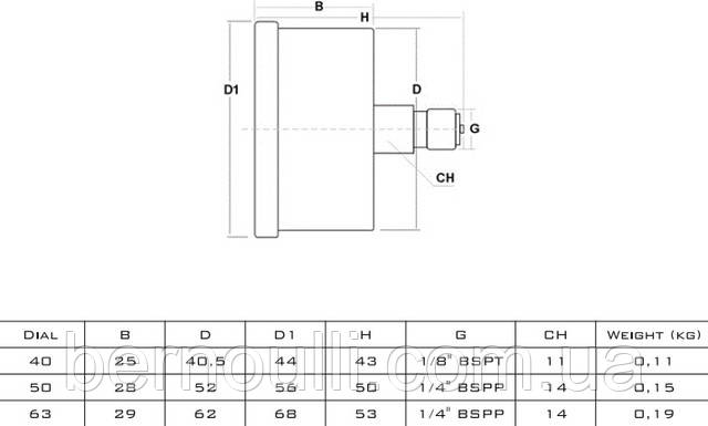 Манометр гліцериновий Ø63мм 400bar 1/4"