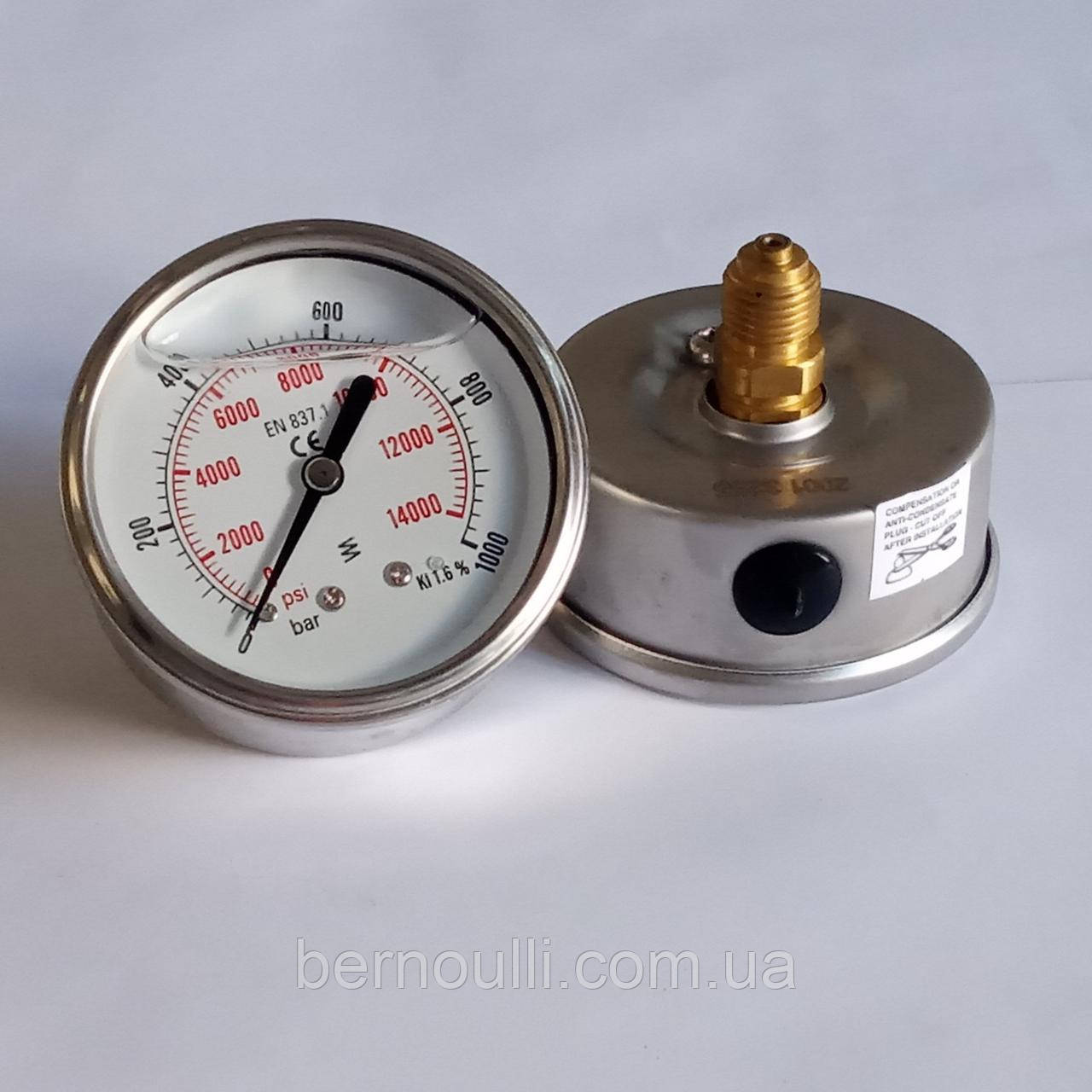 Манометр гліцериновий Ø63мм 1000bar 1/4"