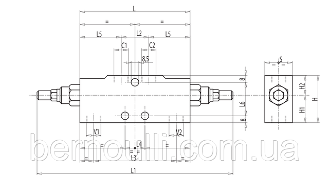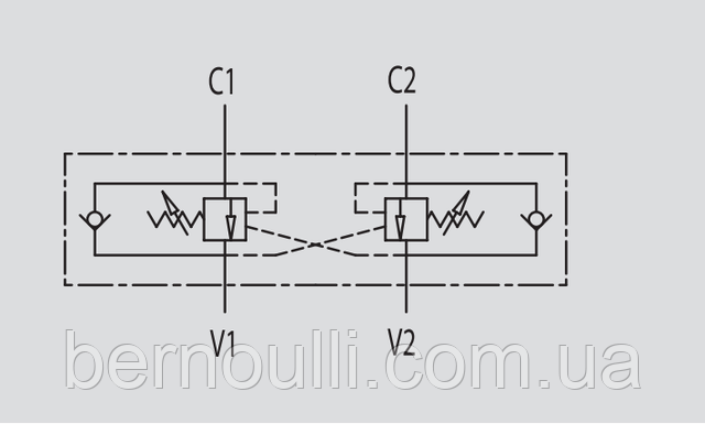 -обмеження максимального тиску в разі поштовхів викликаних напором, перевантажень або різкого управління (контроль напору з розподільником у відкритому центрі).